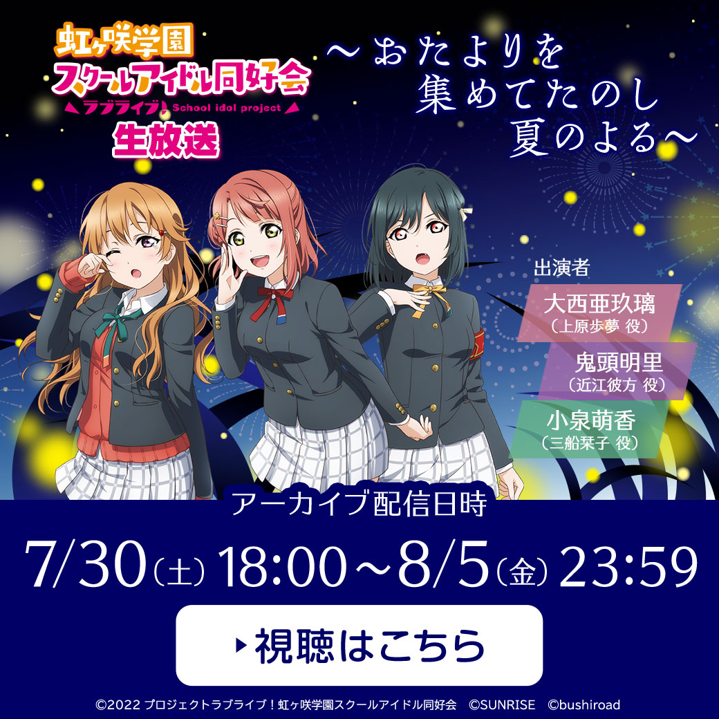 「ラブライブ!虹ヶ咲学園スクールアイドル同好会生放送 〜一瞬が 永遠に思える 夜長かな〜」のお知らせ
