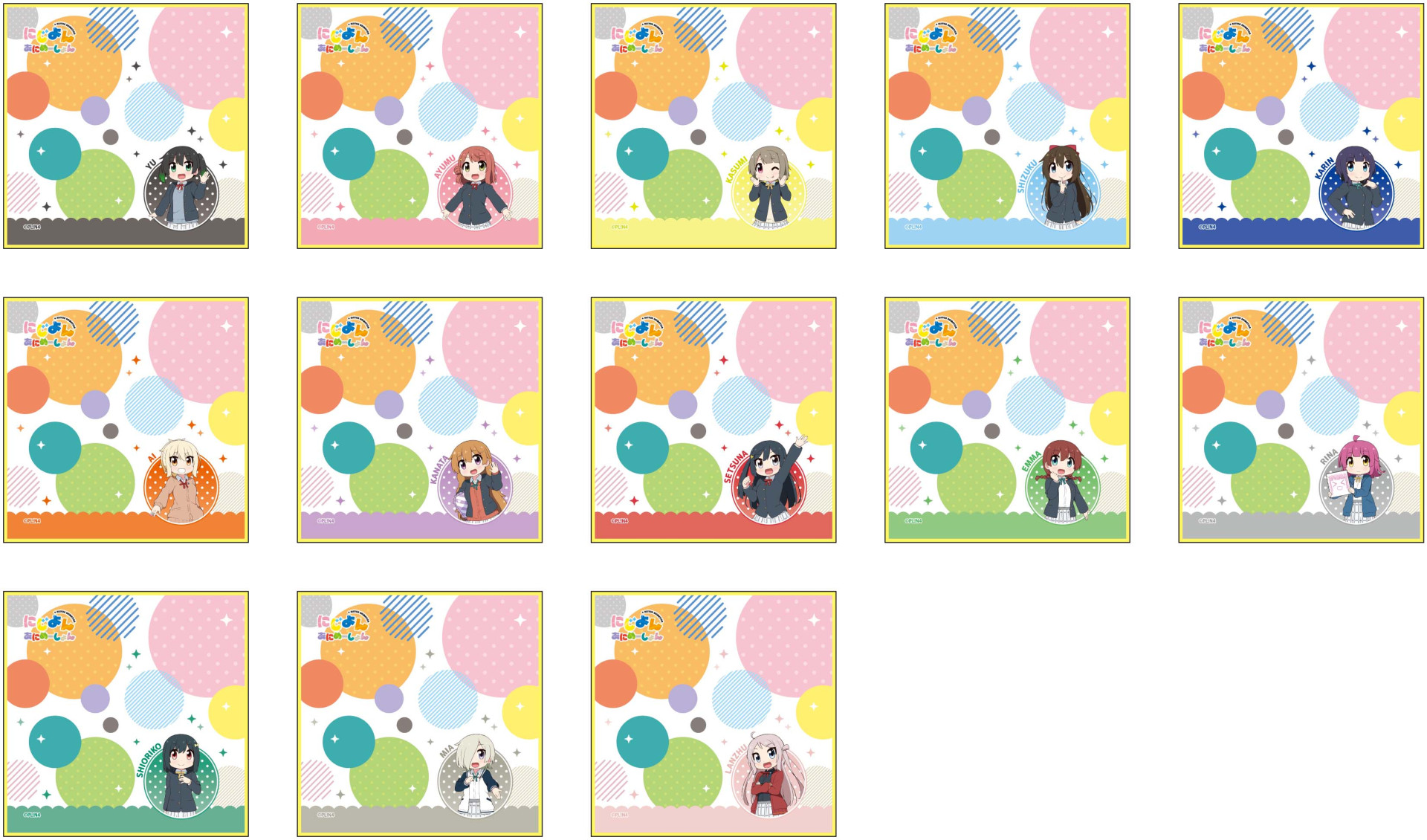 有明ガーデン2Fにて営業中の『ニジガクトキメキSHOP』にて「にじよん あにめーしょん」のつながるアクリルキーホルダー、ワイヤーキーホルダー、アクリルスタンド、ミニアクリルアート、ミニタオルが先行発売されます