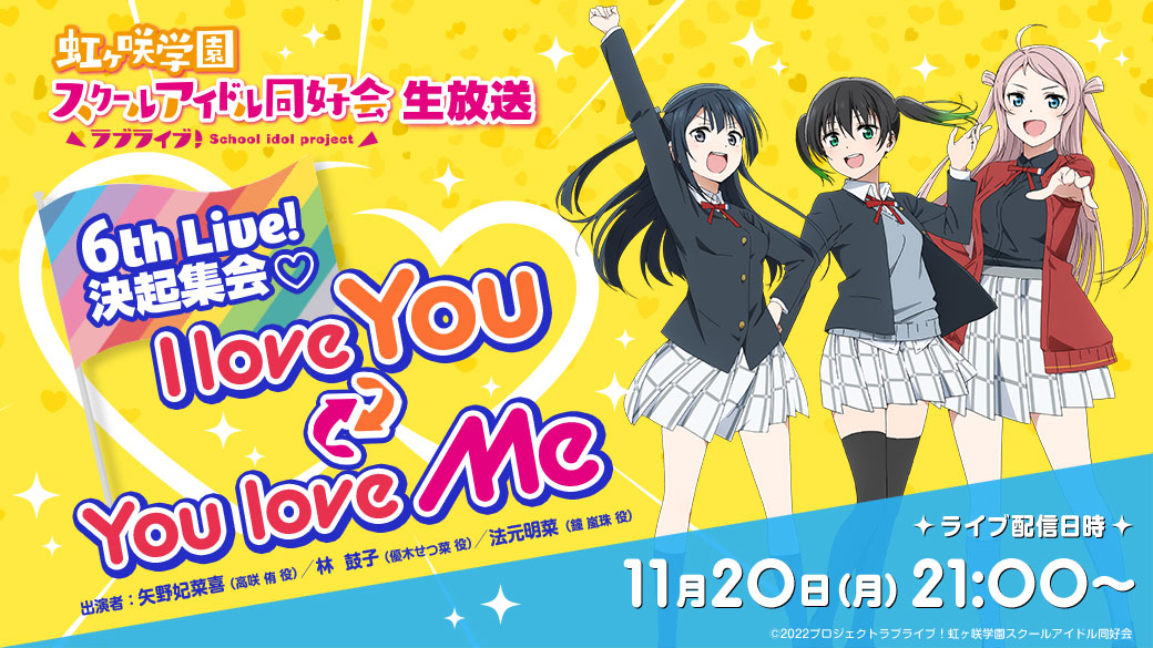 「ラブライブ!虹ヶ咲学園スクールアイドル同好会生放送 6th Live! トキメキ前夜祭♡ I love You ⇆ You love Me」のお知らせ!