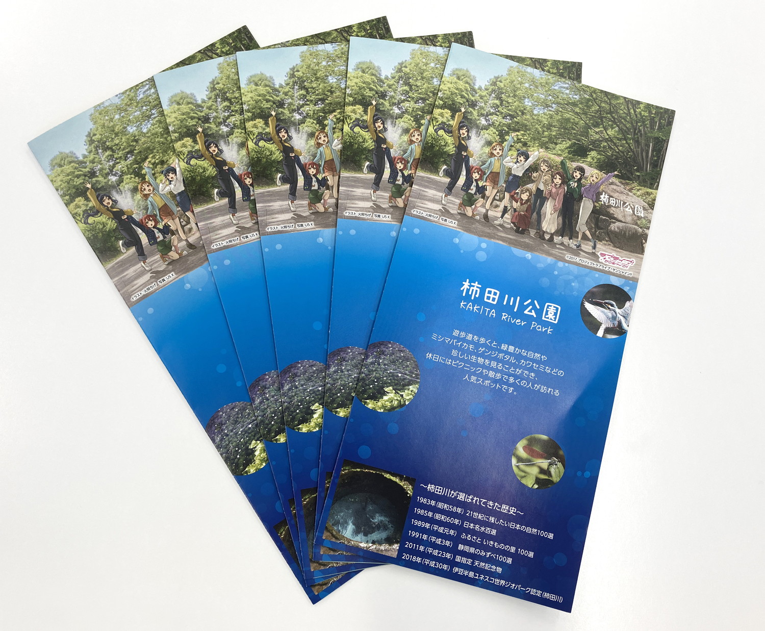火照ちげさんのイラスト、U5 Kさんの写真による柿田川公園を楽しむAqoursのイラストです!