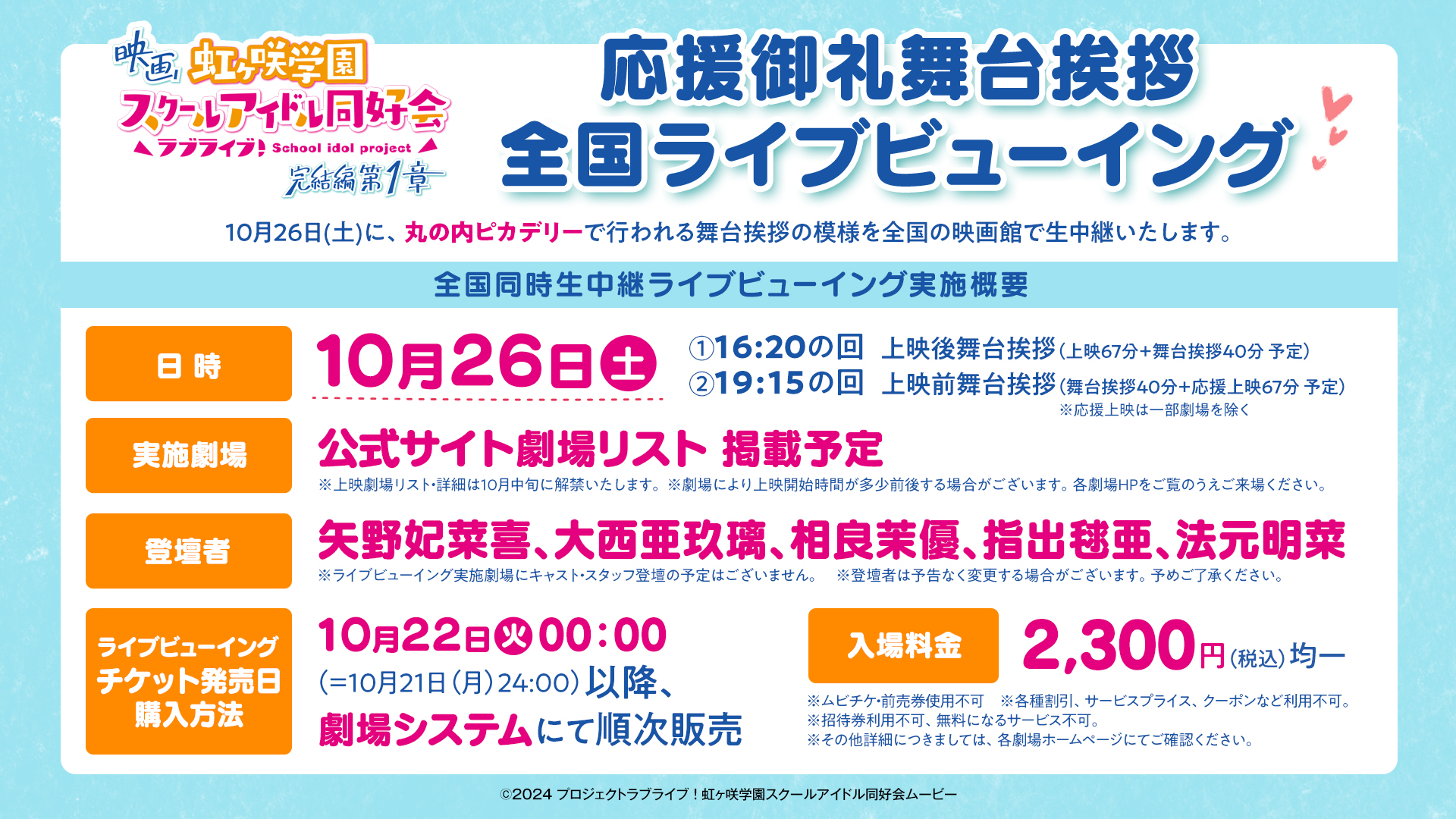 10月26日(土)に丸の内ピカデリーで行われる舞台挨拶の模様を全国の映画館で生中継いたします。