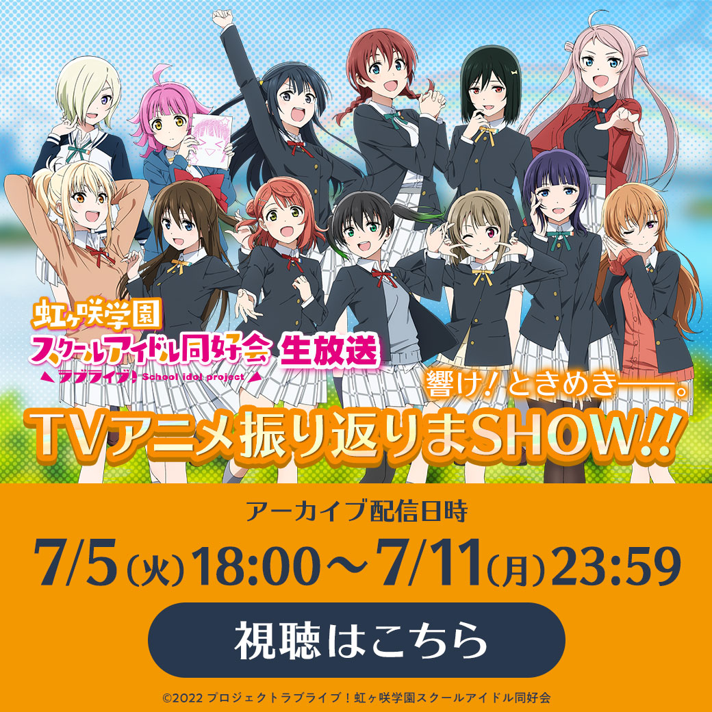 【7月2日配信】『ラブライブ!虹ヶ咲学園スクールアイドル同好会』響け!ときめき――。TVアニメ振り返りまSHOW!!アーカイブ配信決定!
