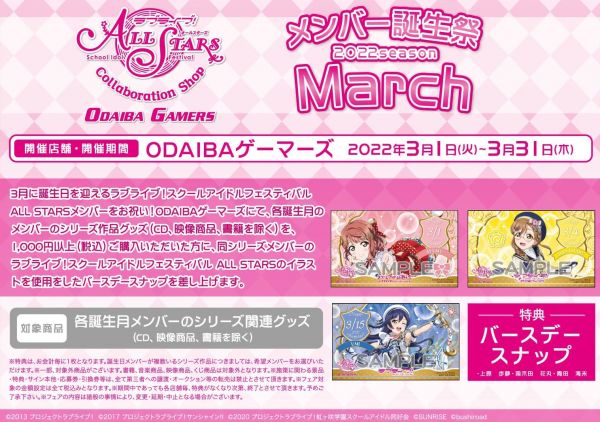 カフェ開催期間中にバースデーを迎える、「ラブライブ!シリーズ」メンバーのバースデーカードをプレゼントします。