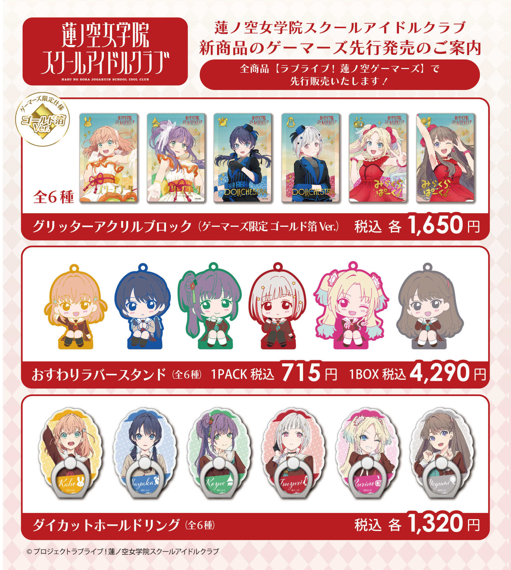 『ラブライブ!シリーズ PremiumShop』の通販サイト<プレミアムストア>より、ラブライブ!蓮ノ空女学院スクールアイドルクラブの新商品発売のお知らせ