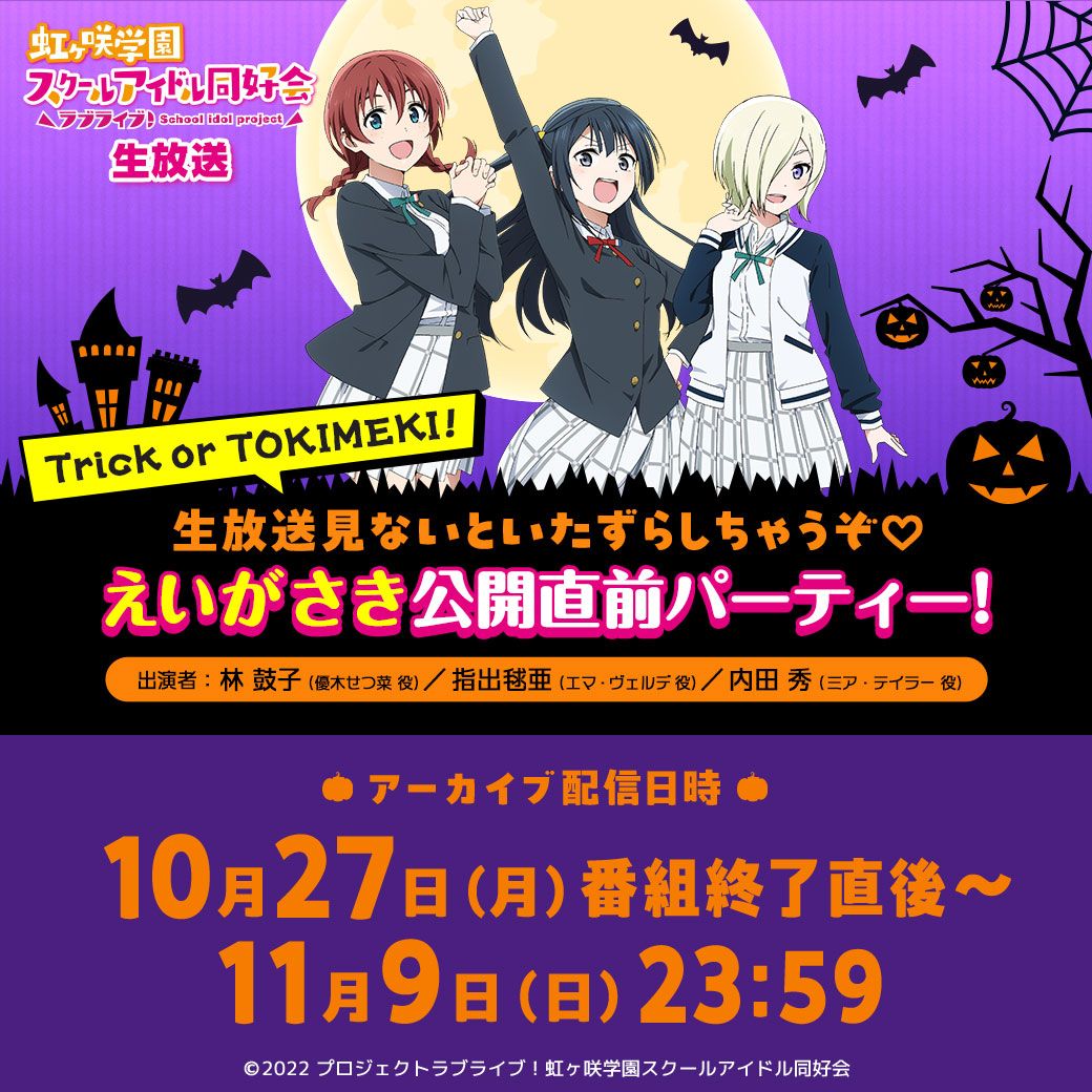 「ラブライブ!虹ヶ咲学園スクールアイドル同好会生放送 Trick or TOKIMEKI! 生放送見ないといたずらしちゃうぞ♡えいがさき公開直前パーティー!」アーカイブ配信のお知らせ!