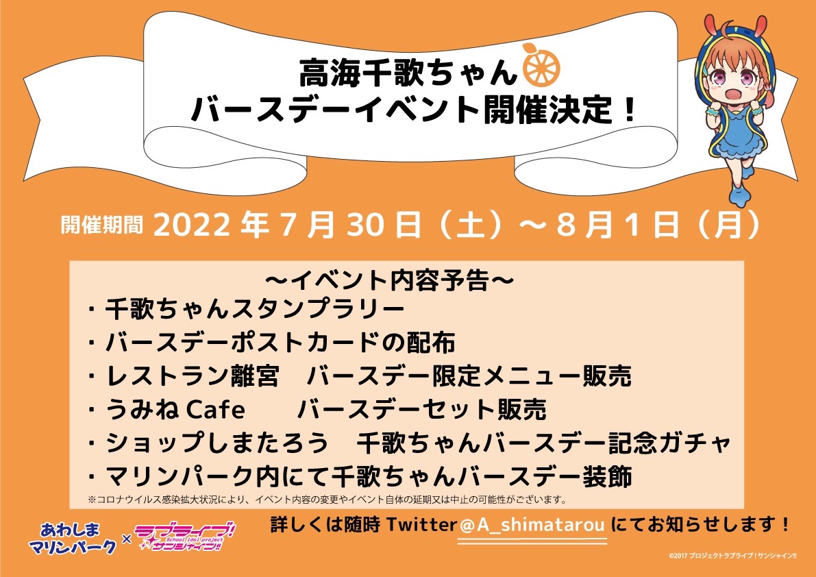 あわしまマリンパークにて、高海千歌ちゃんバースデーイベント開催!