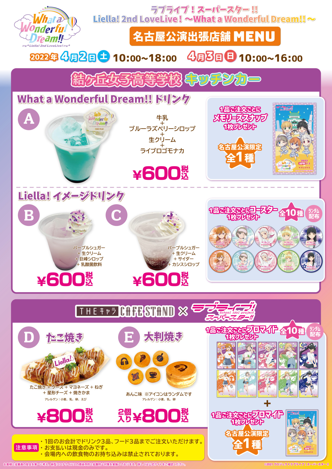 結ヶ丘女子高等学校キッチンカー・THEキャラCAFÉ STAND 2ndライブ名古屋公演出店のお知らせ